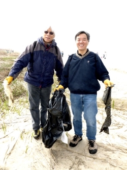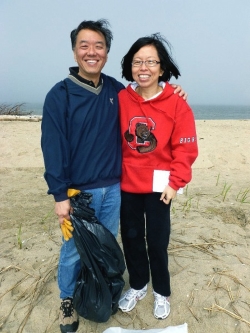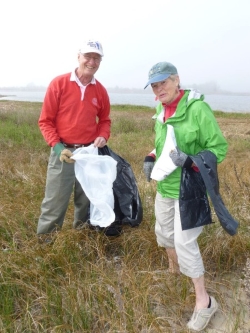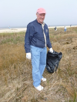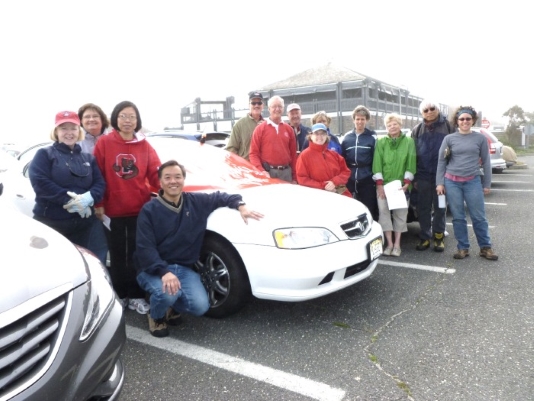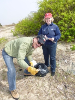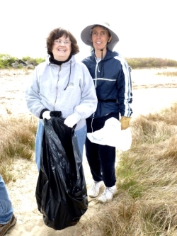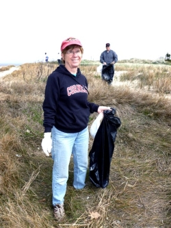 Our Club participated in the 27th Annual Spring Beach Sweeps, organized by New Jersey's Clean Ocean Action. The beach cleanup was preceded by a call to action from Clean Ocean Action's Executive Director Cindy Zipf. The Sweep put thousands of New Jerseyans to work and covered the length of the shore -- 127 miles. Our group collected trash from a beach section facing Sandy Hook Bay. You'd never believe how much fun trash collection can be until you've bagged with fellow Cornellians.  |