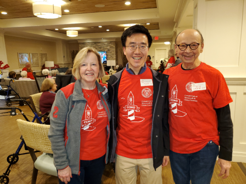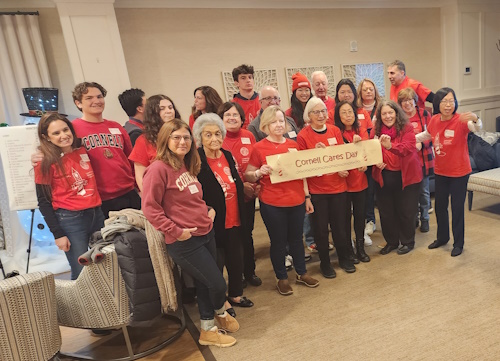 local communities. CCMO participates each year. Volunteers were alumni, students, friends and families -- totaling 27 Cornellians. We sang the Cornell Alma Mater, of course, accompanied by Erik Bernstein '87 on acoustic guitar, along with his daughter Brooke.  |